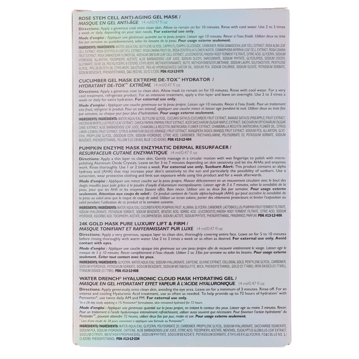 The 5 masks in this kit come with a range of benefits that will have your skin looking its best in no time. The Active Purple™ Pore-Refining Antioxidant Mask works wonders to reduce redness and reveal smooth skin while the Cucumber Gel Mask Extreme De-Tox™ Hydrator purifies and hydrates with an intense cooling sensation. Then try out the Pumpkin Enzyme Mask Enzymatic Dermal Resurfacer to reveal softer skin with brightened tone and visibly diminished lines and wrinkles. Complete your skincare journey with the 24K Gold Mask Pure Luxury Lift & Firm for supple skin that looks firmer and lifted plus the ultra hydrating Water Drench® Hyaluronic Cloud Mask Hydrating Gel for skin that’s found renewed radiance.
