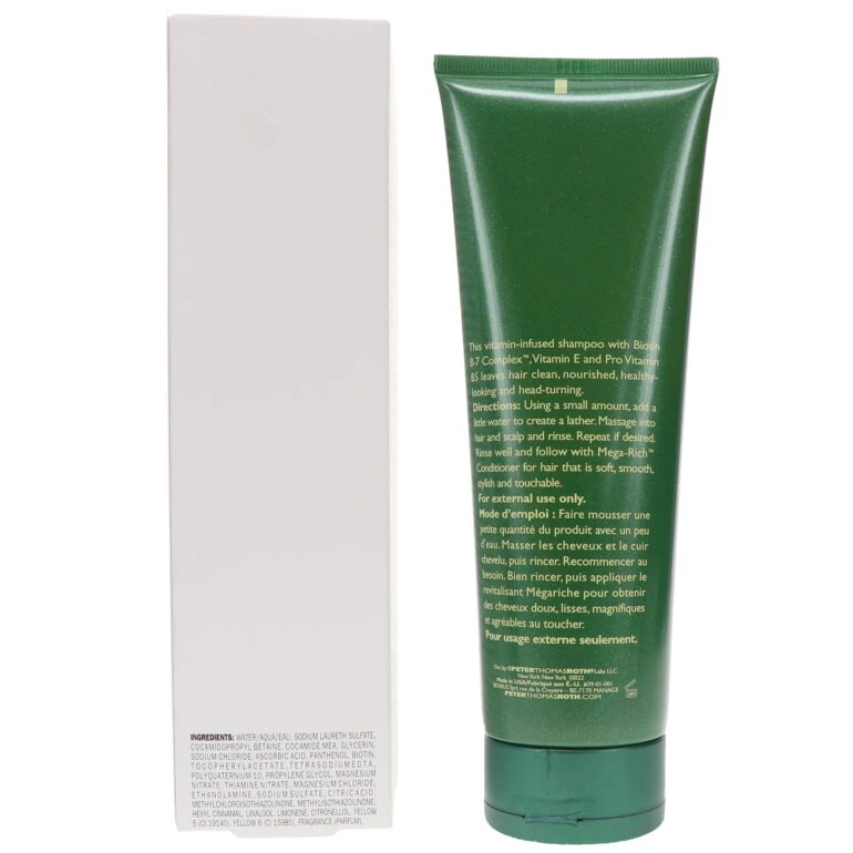 | How To Apply | Using a small amount, add a little water to create a lather. Massage into hair and scalp and rinse. Repeat if desired. Rinse well and follow with Peter Thomas Roth Mega-Rich™ Conditioner for hair that is soft, smooth, stylish and touchable. |