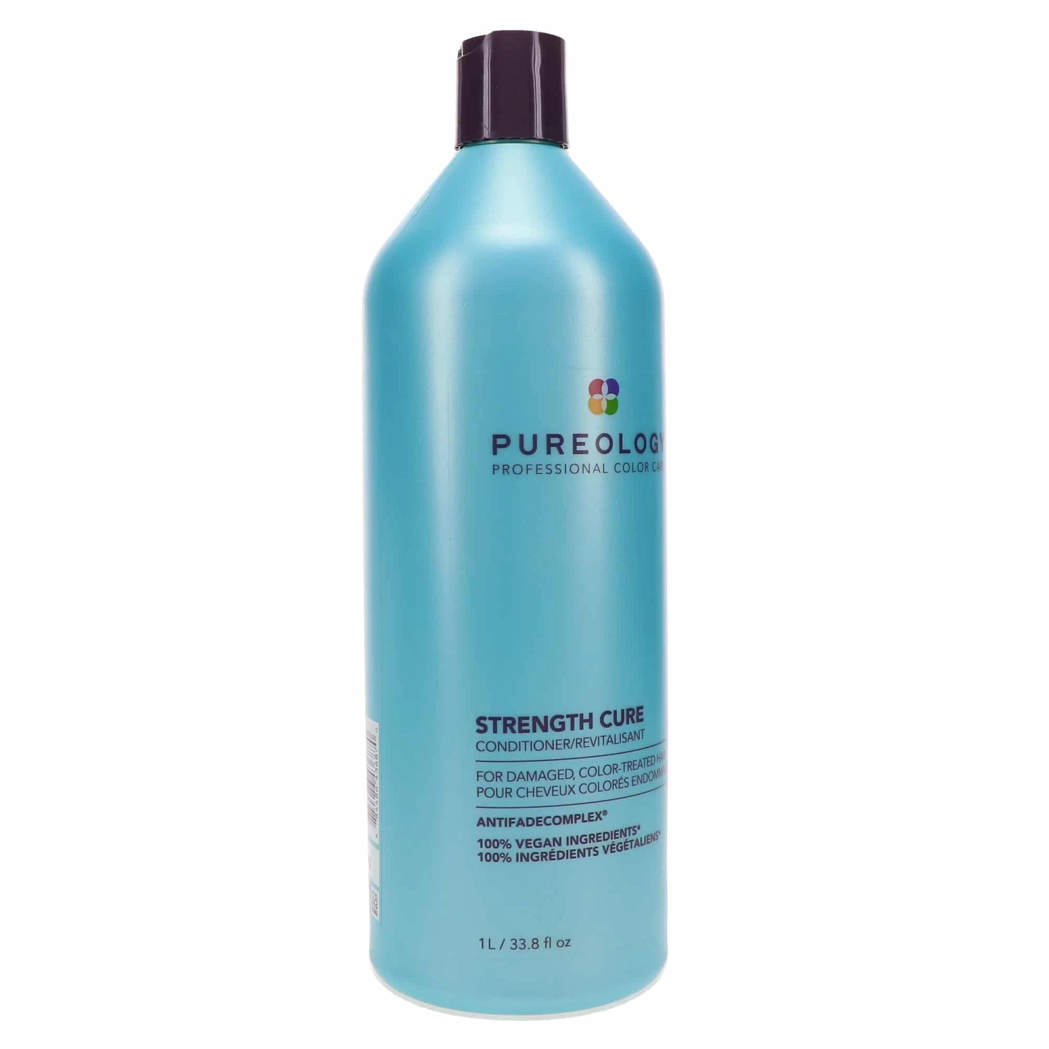 Give your hair the treatment it deserves with Pureology Strength Cure Conditioner 33.8 oz size. This is one of the best products for dry hair because the special formula is designed to strengthen, nourish and protect hair that has been damaged by hot styling tools, harsh treatment and everyday environmental factors. Strength Cure Conditioner repairs the condition of your hair and makes it supple, manageable, soft and tangle-free.