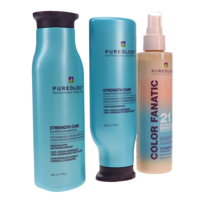 Introducing the ultimate hair rescue system: Pureology Strength Cure Kit. Say goodbye to dull, damaged hair and hello to your healthiest, shiniest locks yet.