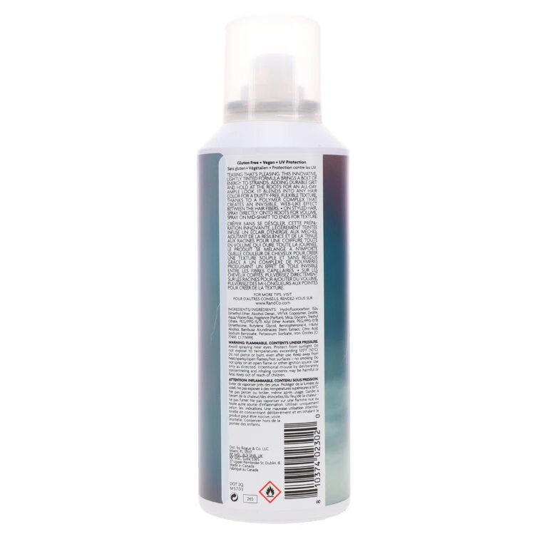 Zig zag root tease and texture spray is the perfect topper for your mane. This innovative, lightly tinted formula brings a bolt of energy to strands, adding durable grit and hold at the roots for an all-day ample look. It blends into any hair color for a dusty-free, flexible texture that will feel like it’s second nature in less than 10 minutes. Simply mist product onto towel dried hair, then gently comb through to maximize volume with ease!
