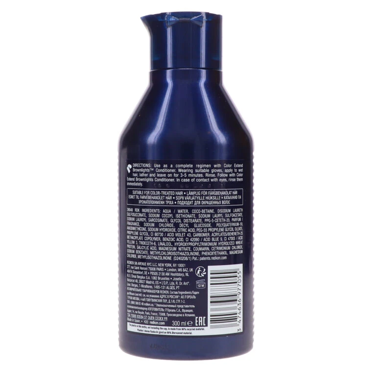 Why should blondes have all the fun? Turn heads by pampering your locks with a professional hair care product specifically developed to keep your brown hair looking cool and vibrant. Redken Color Extend Brownlights Blue Shampoo 10.1 oz neutralizes the brassy and orange undertones that can develop in brunette hair over time by depositing an optimal amount of blue pigment with every wash. This sulfate-free shampoo gently cleanses hair while prolonging the cool tones in highlighted, color-treated or natural brown hair.