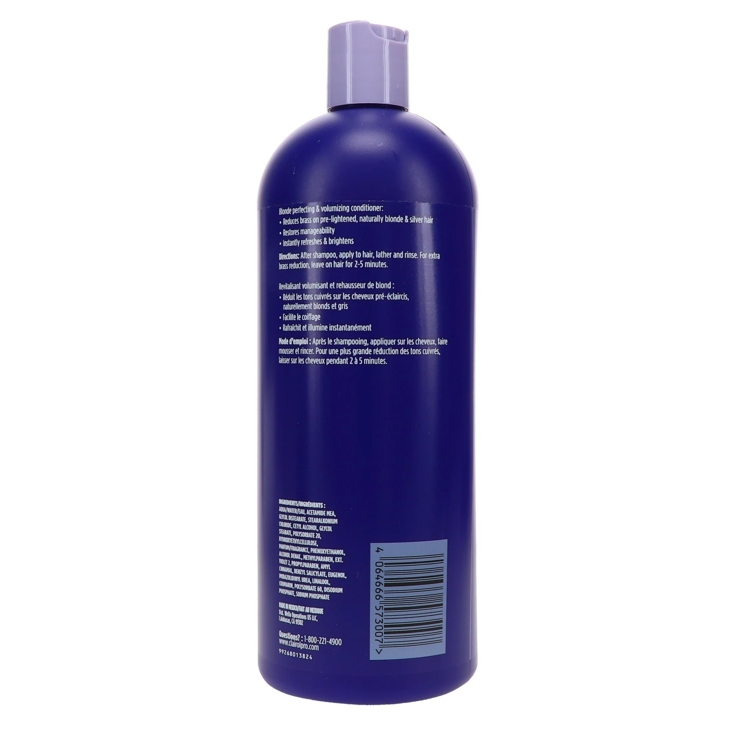 | Ingredients | WATER/EAU, ACETAMIDE MEA, STEARALKONIUM CHLORIDE, GLYCOL DISTEARATE, CETYL ALCOHOL, GLYCOL STEARATE, POLYSORBATE 20, HYDROXYETHYLCELLULOSE, FRAGRANCE/PARFUM, PHENOXYETHANOL, METHYLPARABEN, EXT. VIOLET 2, PROPYLPARABEN, IMIDAZOLIDINYL UREA. |