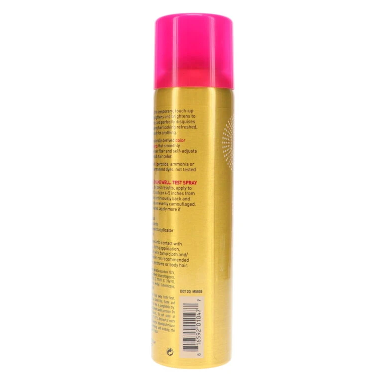 It is not convenient to have fully color your hair just to bring gray regrowth under control. When your dark blonde style needs a little touch-up, this spray gives you complete coverage in seconds in a fast-drying, flake-free formula that was not tested on animals. This Touch Up Spray is great for strands of any type or texture. Pigments that adapt to your color bond strongly to each hair fiber, adjusting to blend in with your color. You will love the natural, lustrous finish of this product which puts some much-needed boost to your look between visits to your favorite colorist.