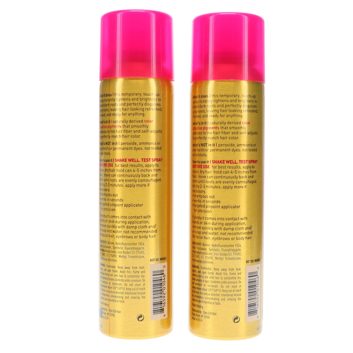 Before applying, shake the spray well. From two to three inches away, apply directly to your roots. Let the product stand for two to three minutes to set your finish. This spray washes out completely with shampoo.