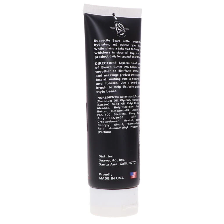 | How To Apply | Squeeze a small amount of Beard Butter into hands and rub together to distribute product. Rub and massage product thoroughly into beard, making sure to coat the roots and follicles. Use a beard comb or brush to help distribute product and style beard. |