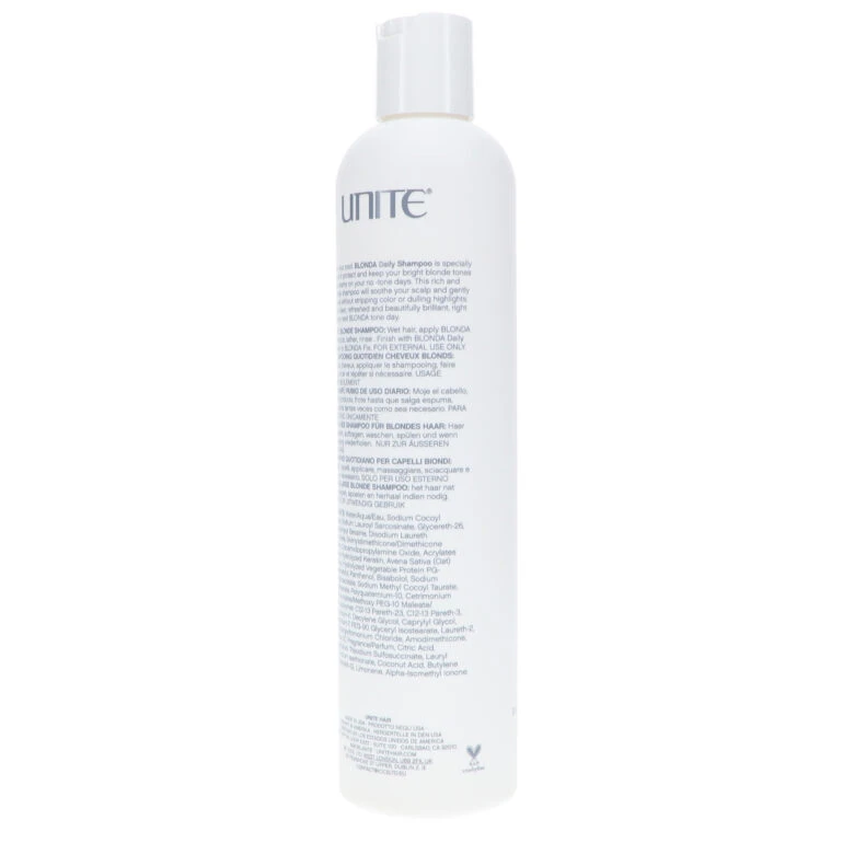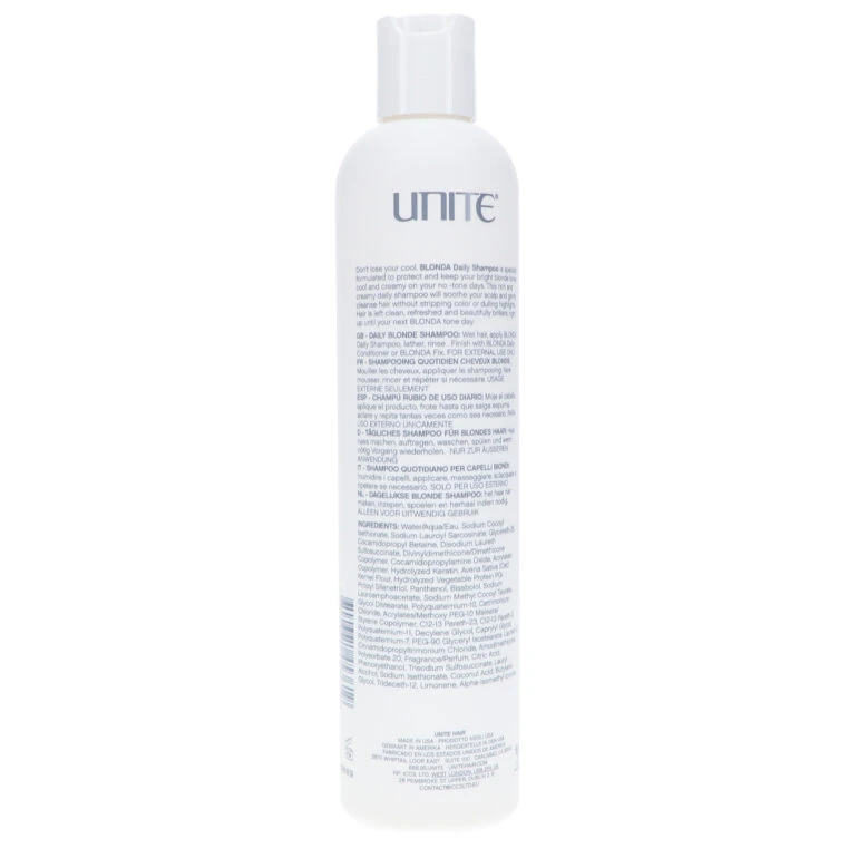 UNITE Blonda Daily Shampoo is the best hair moisturizing shampoo specially designed for blondes. This shampoo is designed to remove orange and yellow tints from blonde hair due to harsh water and dyes. Free of parabens and sodium chloride, this shampoo intensely moisturizes dry and brittle chemically treated hair. Unite is a professional hair care industry devoted to delivering the best hair care products to their customers. Unite provides professional salon level hair care products and tools that help leave customers feeling like they just left a professional and high end salon. This California based research company is devoted to experimenting with products to deliver quality made hair care products to their wide variety of customers. Their goal is provide excellent hair care products for every hair type.