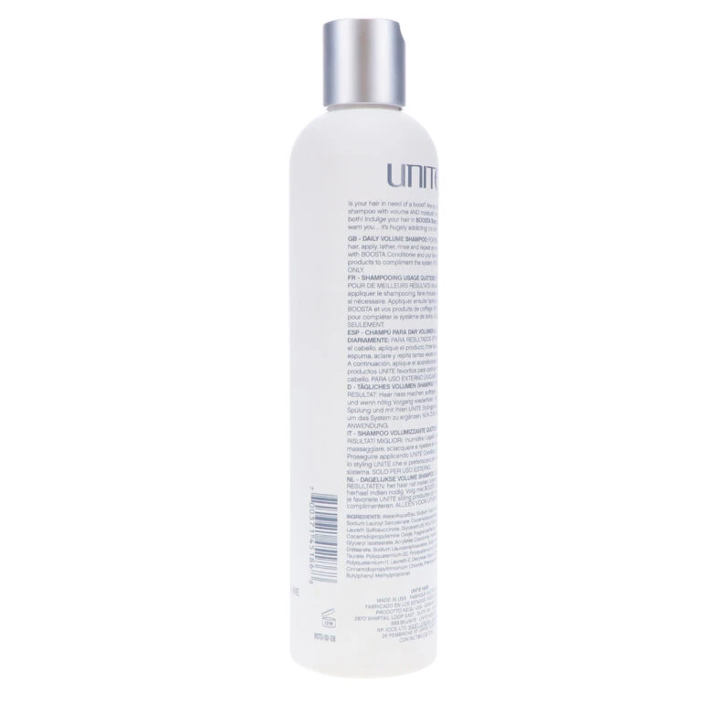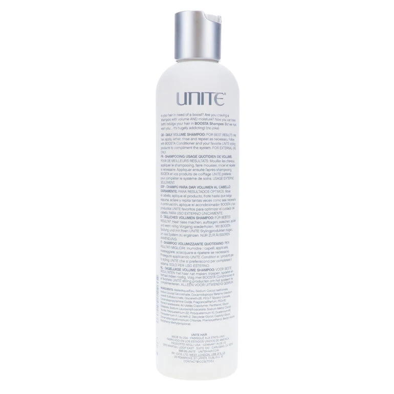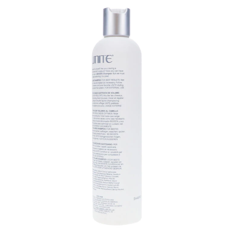 Look no further for the ultimate volumizing hair shampoo. Boosta Shampoo by Unite builds big body with a unique formula that lathers up to a rich, nourishing foam that leaves hair radiant, healthy and vivacious.