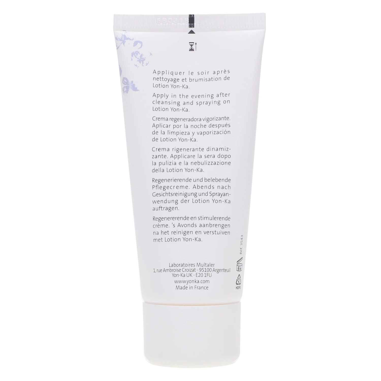 | How To Apply | In the evening, after cleansing and spraying on Lotion Yon-Ka, apply the cream to the face and neck. This cream can be applied in the morning for a "shock treatment" that will instantly tone the complexion and prepare it for the day. For a tailored solution to specific needs, use both the cream and an energizing concentrate recommended by a Yon-Ka authorized center. |